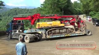 BIG Digger Excavator Transport By Self Loader Truck Mobilisasi Alat Berat CAT 336D LME CAT 320D. UD Trucks Quester CGE 370, UD Nissan Diesel CD48, ...