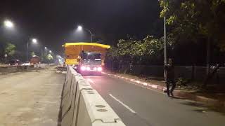 - angkutan alat berat # hampir nyangkut pembatas jalan