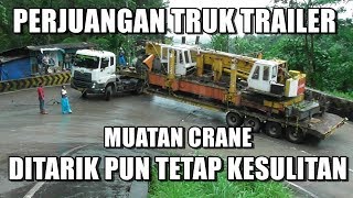 - DRAMA TRUK TRAILER PENGANGKUT CRANE GAK KUAT NANJAK DAN TERJEBAK DI SITINJAU LAUIK